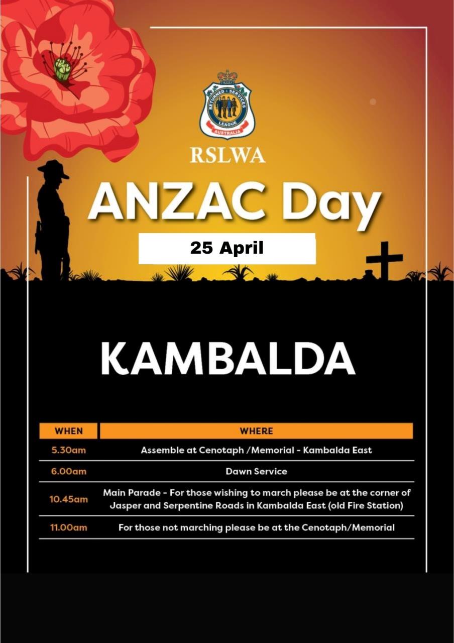 Please join the community in commemorating Anzac Day at the Kambalda East Memorial Cenotaph.