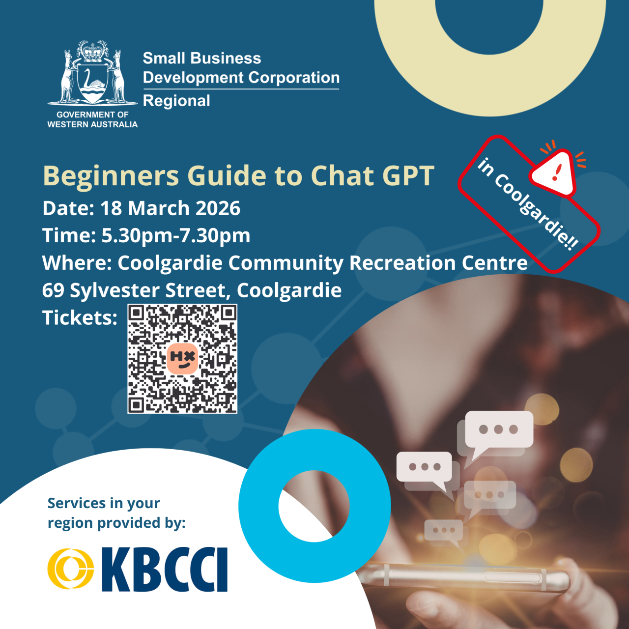👉 Register your interest SBDC Regional - Goldfields: Beginners Guide to Chat GPT in Coolgardie