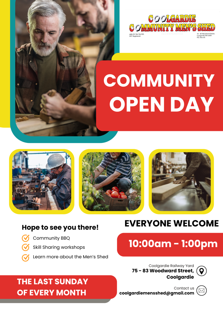 Come along and see what the Men’s Shed is all about! Join us for a free BBQ, enjoy some skill-sharing demonstrations, and discover the projects our members are working on.