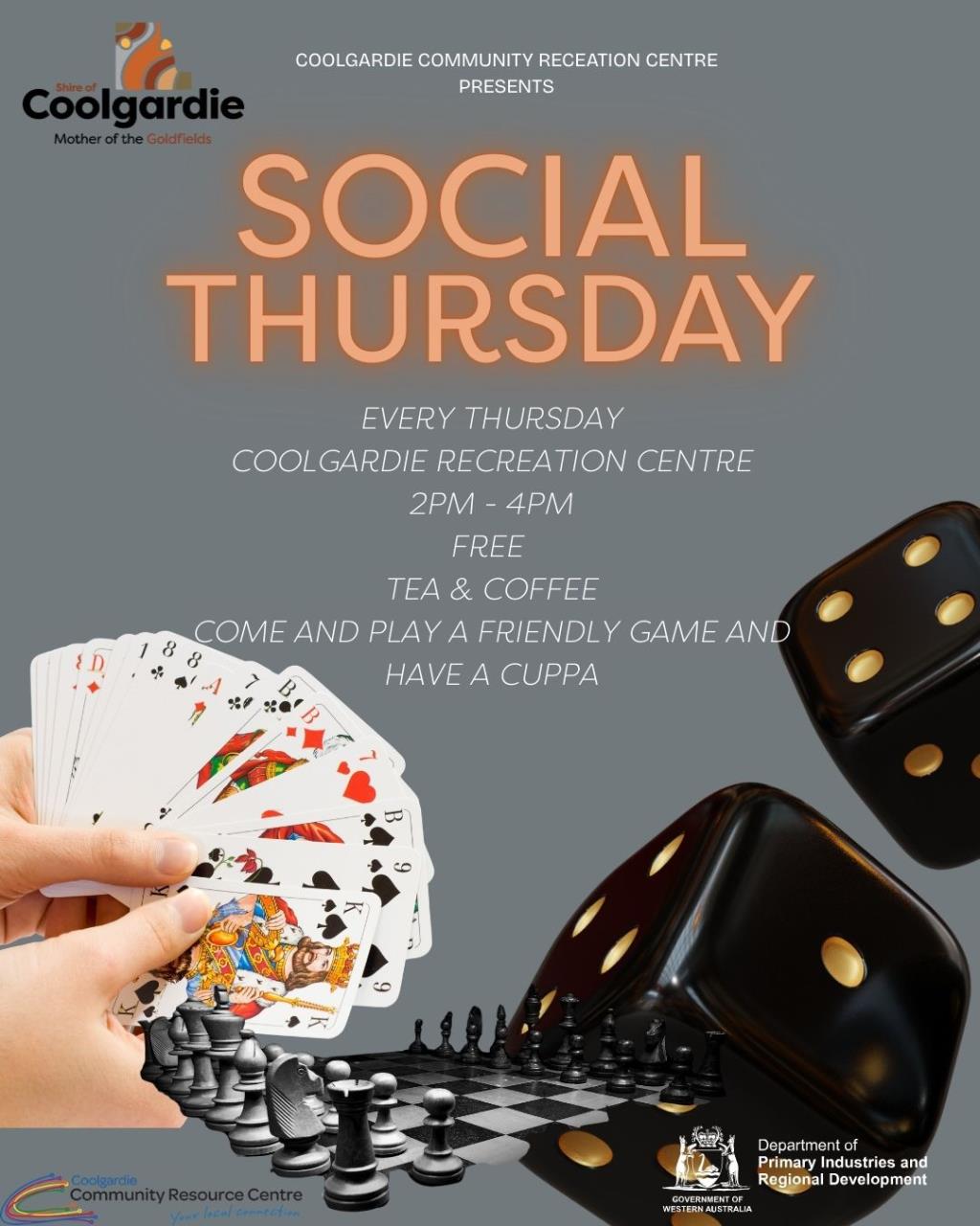 Come and Join us every Thursday at the Coolgardie Community Recreation Center for board games, chess, cards and dominos.