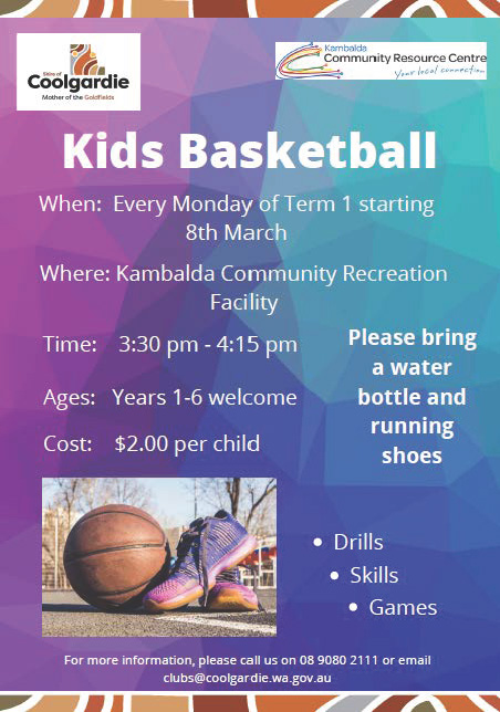 Cost: $2.00 per child Please bring a water bottle and running shoes Drills Skills Games For more information, please call us on 08 9080 2111 or email clubs@coolgardie.wa.gov.au