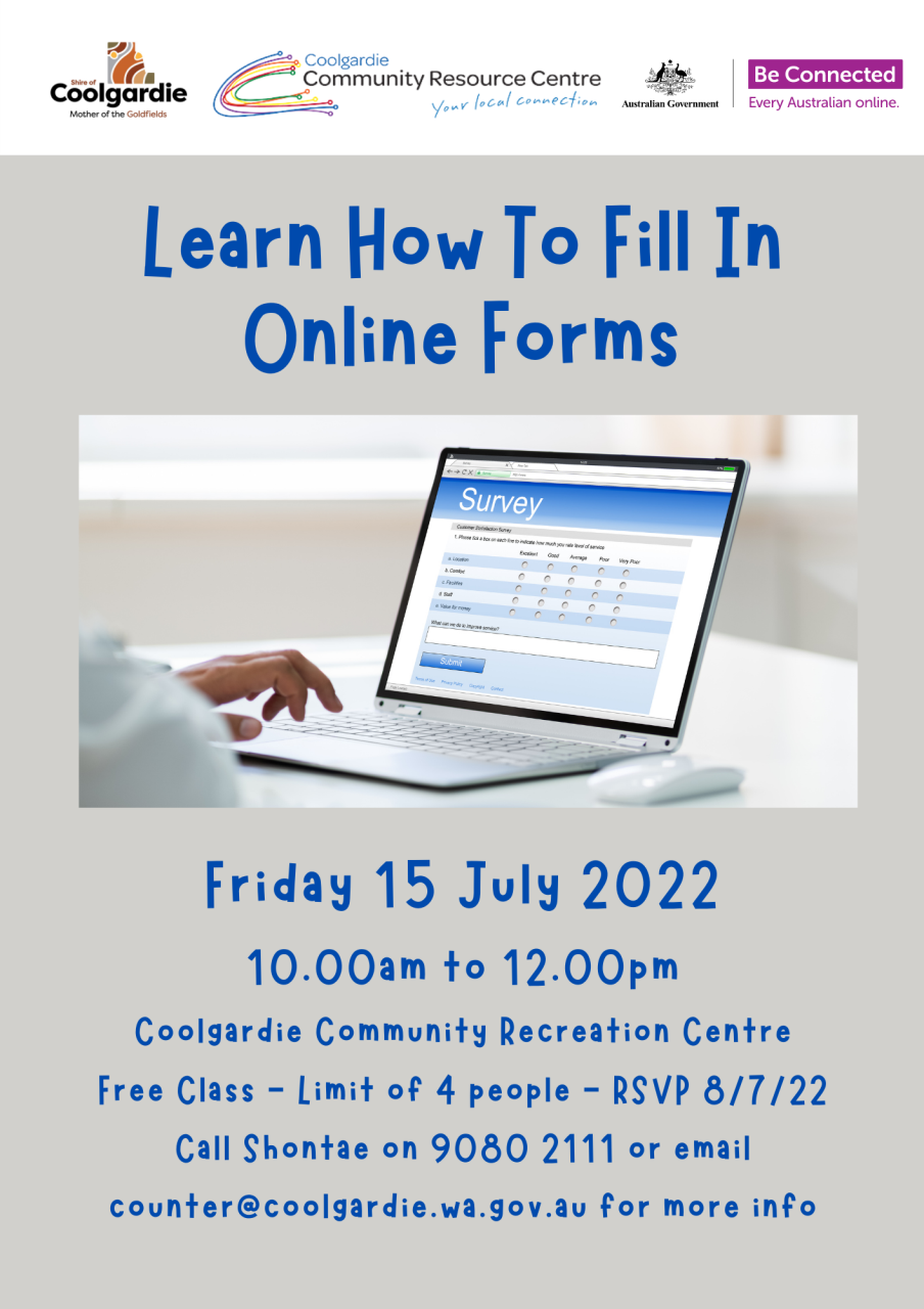 If you would like to reserve a place in this class, or you require more information please contact the Shire of Coolgardie on 9080 2111 or email counter@coolgardie.wa.gov.au