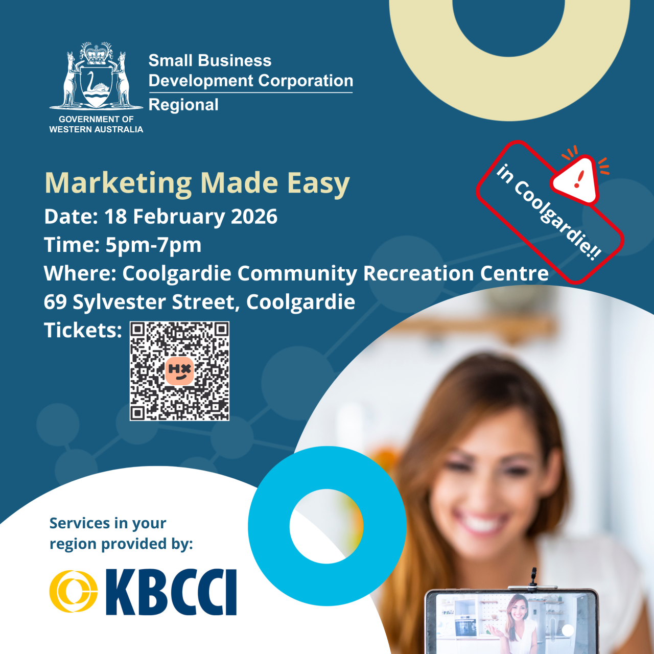Join us at the Coolgardie Community Rec Centre to empower yourself and gain knowledge on Marketing yourself and your business.