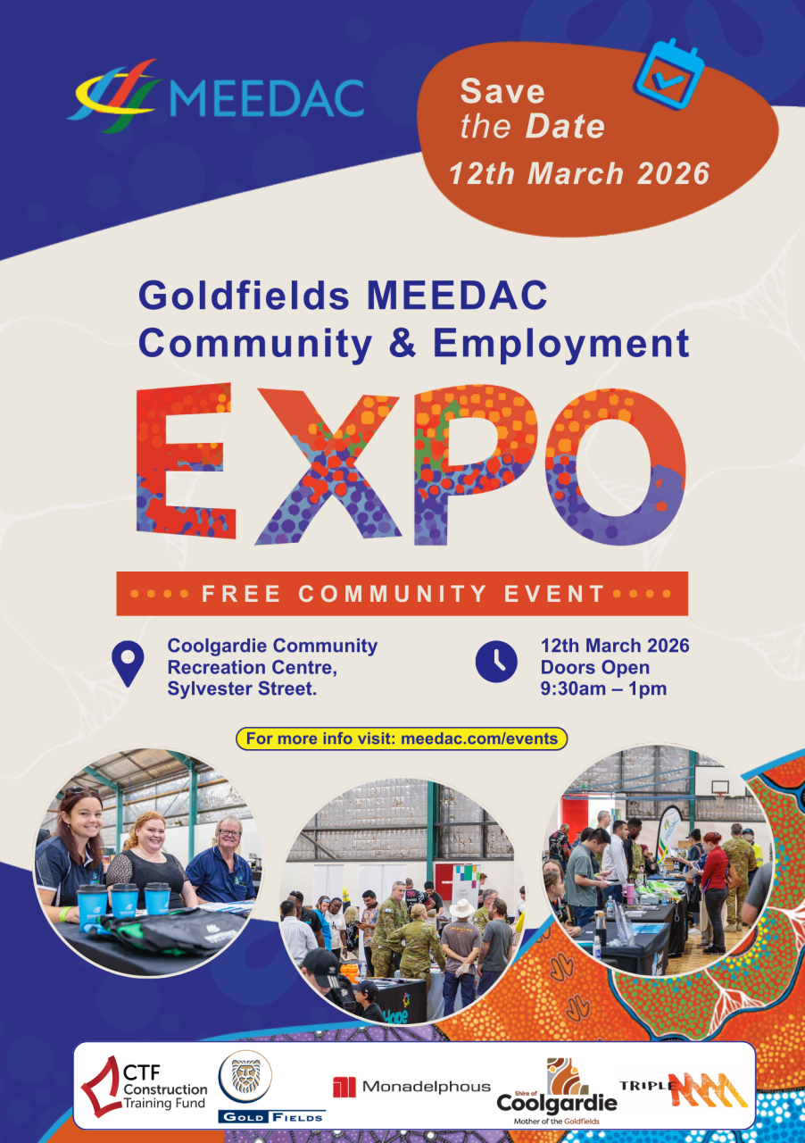 MEEDAC is excited to bring the MEEDAC Goldfields (Coolgardie) Community & Employment Expo back to Coolgardie in 2026 and everyone is invited to attend.