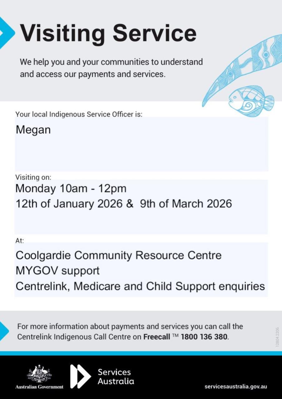 Services Australia Visiting Coolgardie