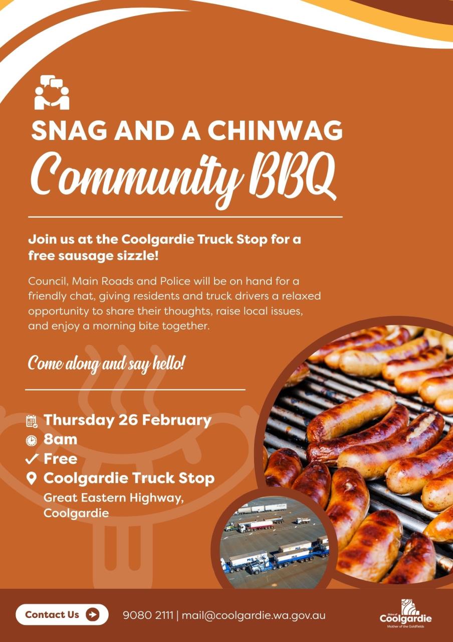 Join us at the Coolgardie Truck Stop for a free sausage sizzle!