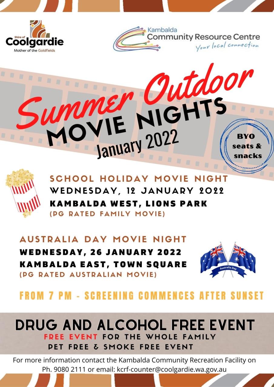 School Holiday Movie Night Wednesday, 12 January 2022 Kambalda West Lions Park (PG rated family movie)- FREE