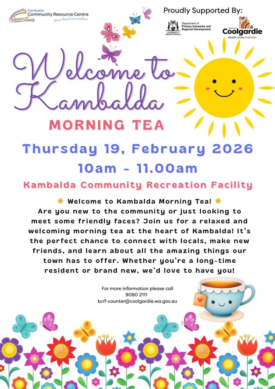 Are you new to the community or just looking to meet some friendly faces? Join us for a relaxed and welcoming morning tea at the heart of Kambalda! It's the perfect chance to connect with locals, make new friends, and learn about all the amazing things our town has to offer. Whether you're a long-term resident or brand new, we'd love to have you!