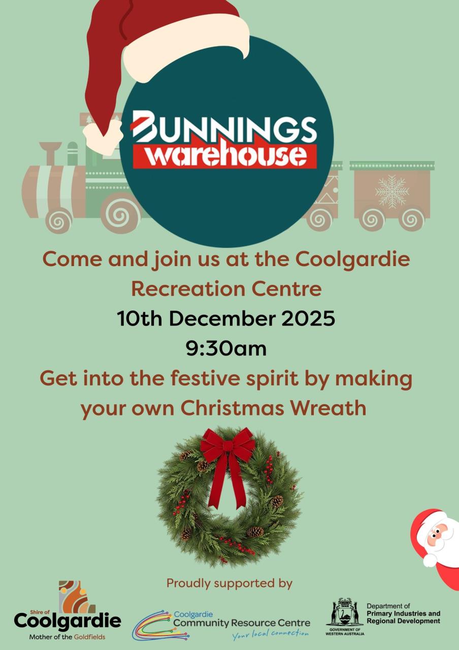 Come and join us at the Coolgardie Community Recreation Centre10th December 2025 at 9:30amGet into the Christmas spirit by making your own Christmas Wreath