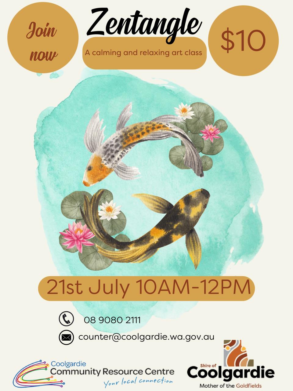 Zentangle Date: Friday, 21st July 2023 Time: 10am to 12pm Location: Coolgardie Recreation Centre Cost: FREE Join us at the Coolgardie Recreation Centre for zentangle, a calming and relaxing art class.